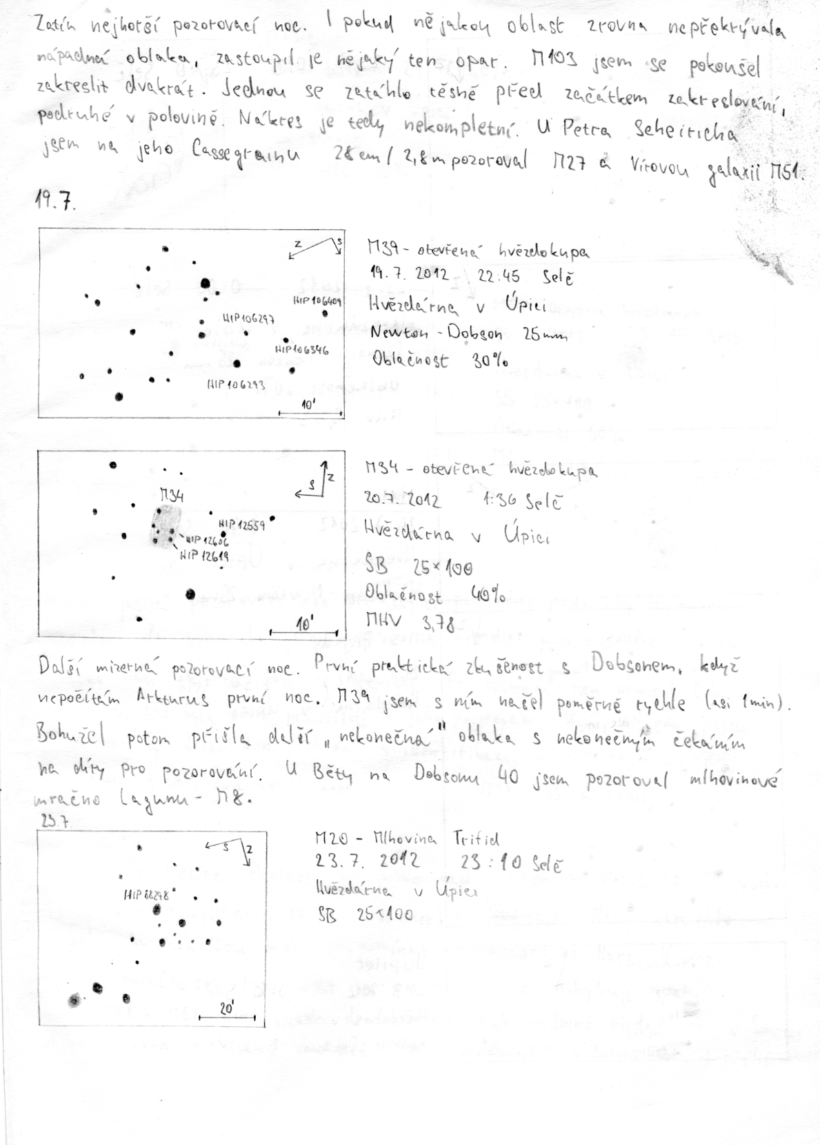 V následujících dnech Měsíc nebyl pozorovatelný (nov nastal 19.7.), proto se naše skupina zaměrila na pozorování deep sky objektů. Pro letošní rok jsem byla nucena k jistému ústupku, a sice že název naší skupiny byl mírně modifikován na Měsíční skupinu/Deep sky. S těžkým srdcem musím se změnou souhlasit, jelikož po většinu času, co nebyl pozorovatelný Měsíc, jsme pozorovali právě deep sky objekty, neboli objekty vzdáleného vesmíru (mlhoviny, galaxie, hvězdokupy).