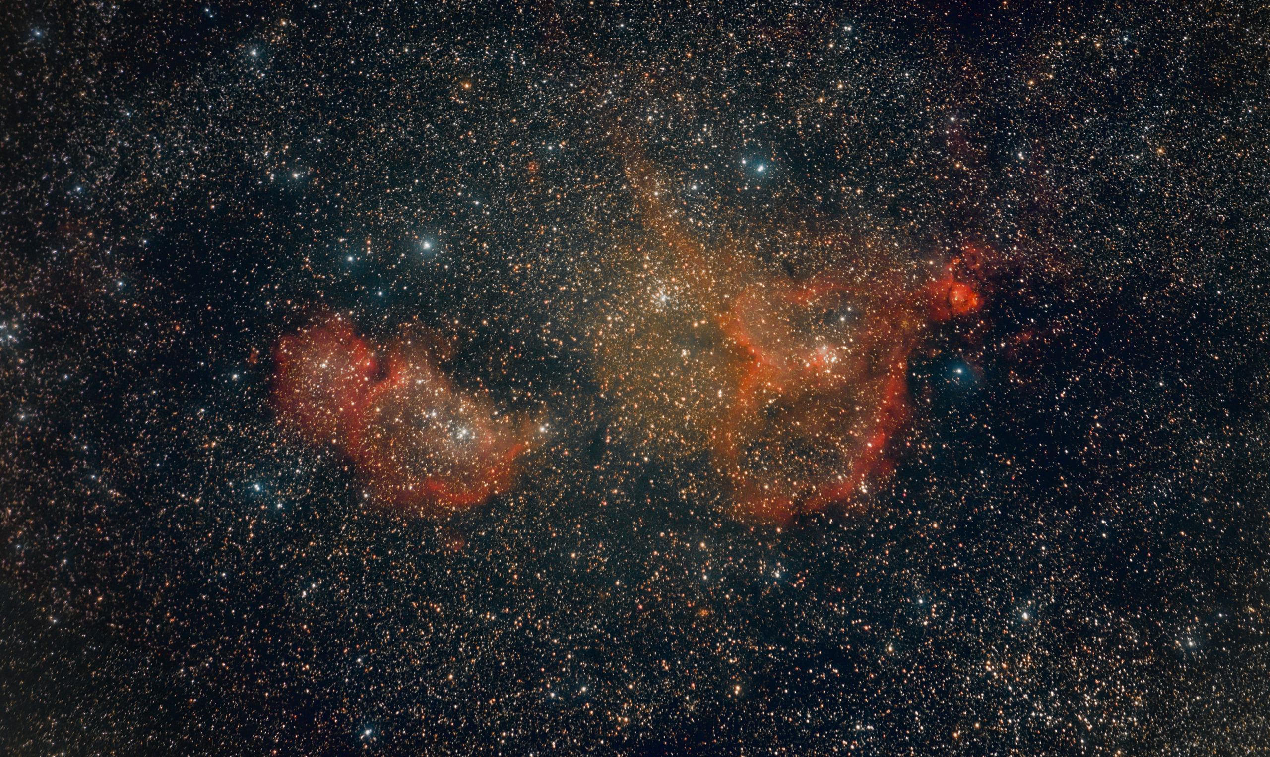 Dvojice mlhovin Srdce a Duše se krásně hodí k Astronomické expedici, kde desítky expedičníků vkládají svá srdce do svých nočních pozorování, ať už nákresů, fotografií nebo křivek, a kde více než desítka vedoucích zaprodává svou duši za hladký průběh expedice, hezké počasí, dobré (a nezávadné) jídlo a mnoho dalších organizačních kratochvílí. Kde jinde fotit takto…