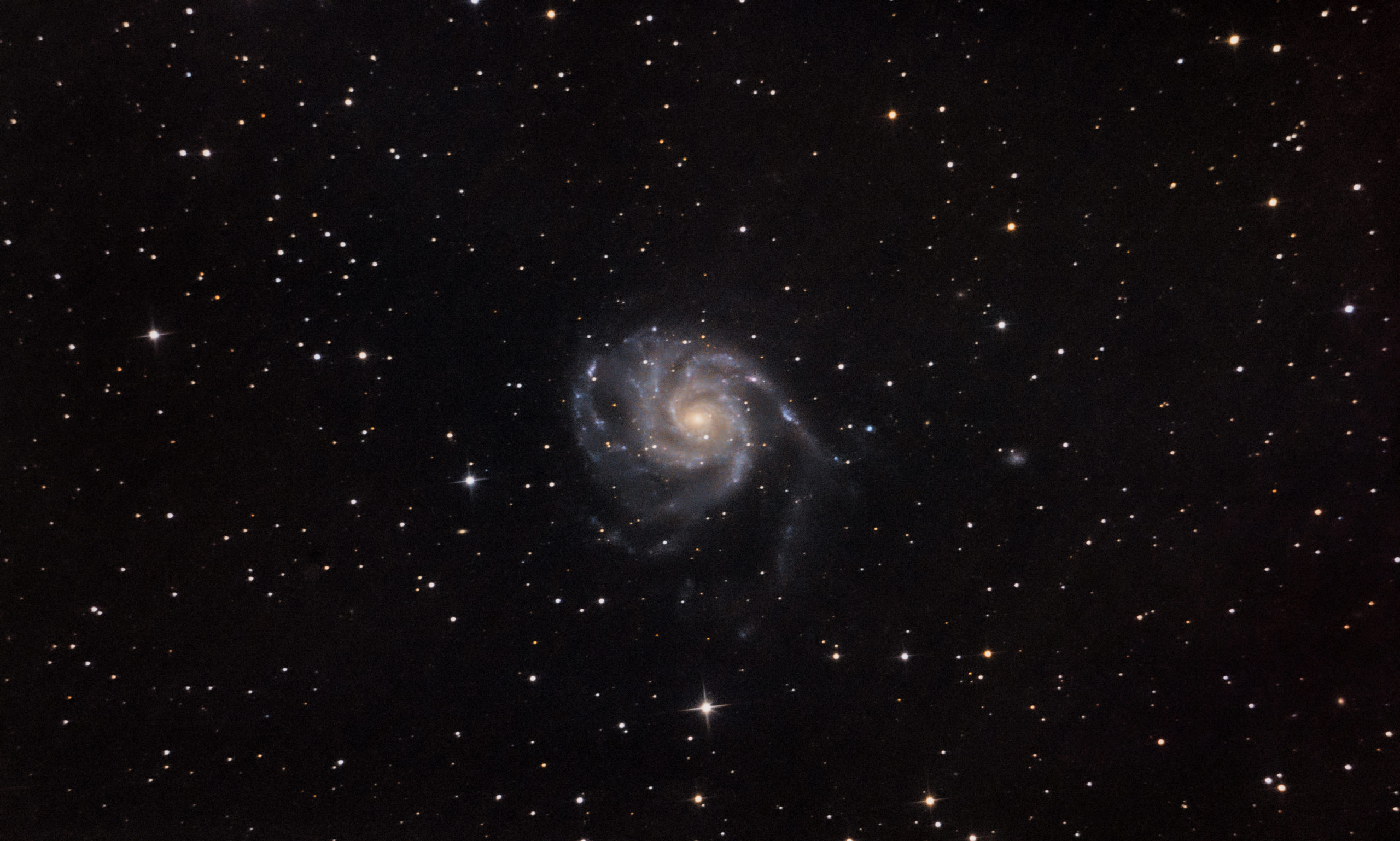 Spirální galaxie Větrník – M101 se nachází v souhvězdí Velké Medvědice, je vzdálená asi 27 000 000 ly a má magnitudu 7,9. Je asi o 20% vetší než naše Galaxie, avšak na obloze vypadá asi 6x menší. Focená 27.8.