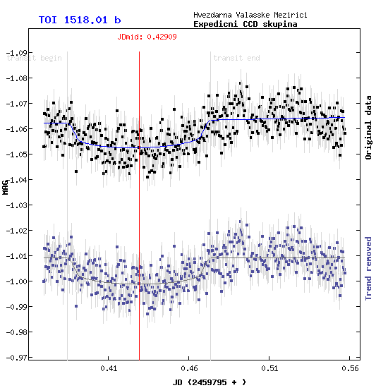 Po úspěchu s minulým pozorováním jsme se tentokrát zaměřili na exoplanety ve velkém. Na dnešní noc ze 3. na 4. 8. připadaly dva vhodné cíle, příhodně odpovídající svou jasností schopnostem našich dalekohledů. Menší newtony (150/750) – jeden v Sítinách a Sekční set ve ValMezu – se zaměřily na jasnější TOI 1518.01 b, zatímco naše dva větší newtony (200/1000) v Sítinách a „Dvacítka“ (200/800) ve ValMezu mířily na slabší TOI 1168.01 b.