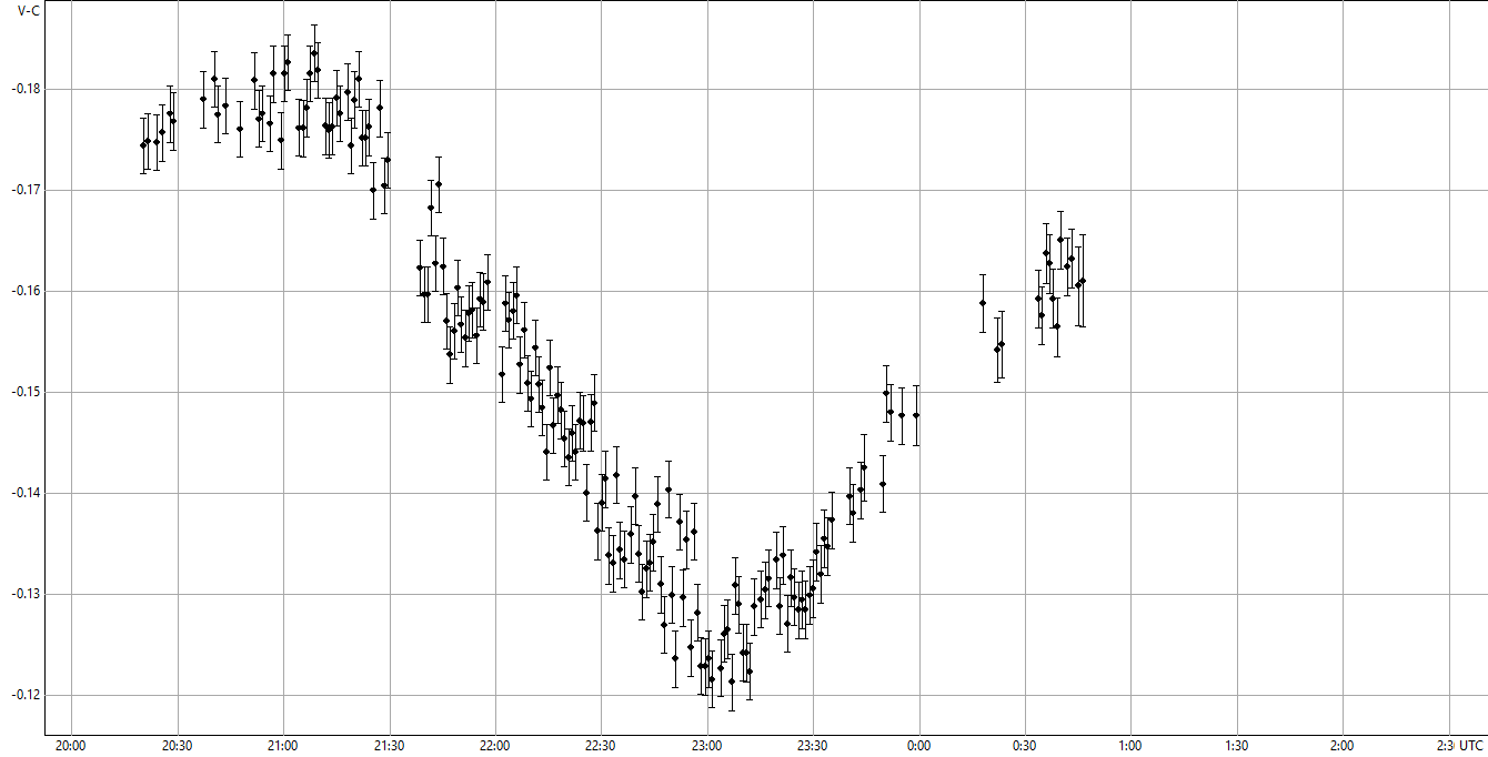 Meteorologické podmínky však nebyly ideální ani ve ValMezu a výsledná světelná křivka má k dokonalosti daleko, pro účely výzkumu však bohatě postačí.