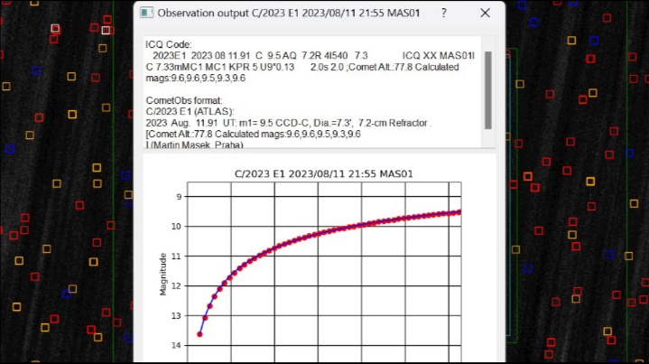 11.8.2023 jsme namířili dalekohled WO72/432 na kometu letošního roku C/2023 E1 ATLAS.