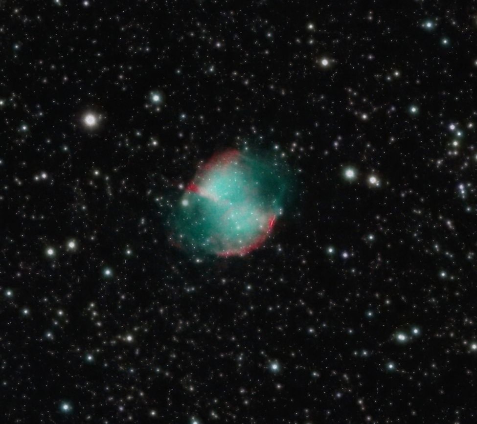 Expedice mi začínala s porodnímy problémy, avšak první úlovek sklidil výsledek až teď, ano až ke konci Expedice. Newton 150×650; ZWO ASI533MC Pro, RGB + Hα