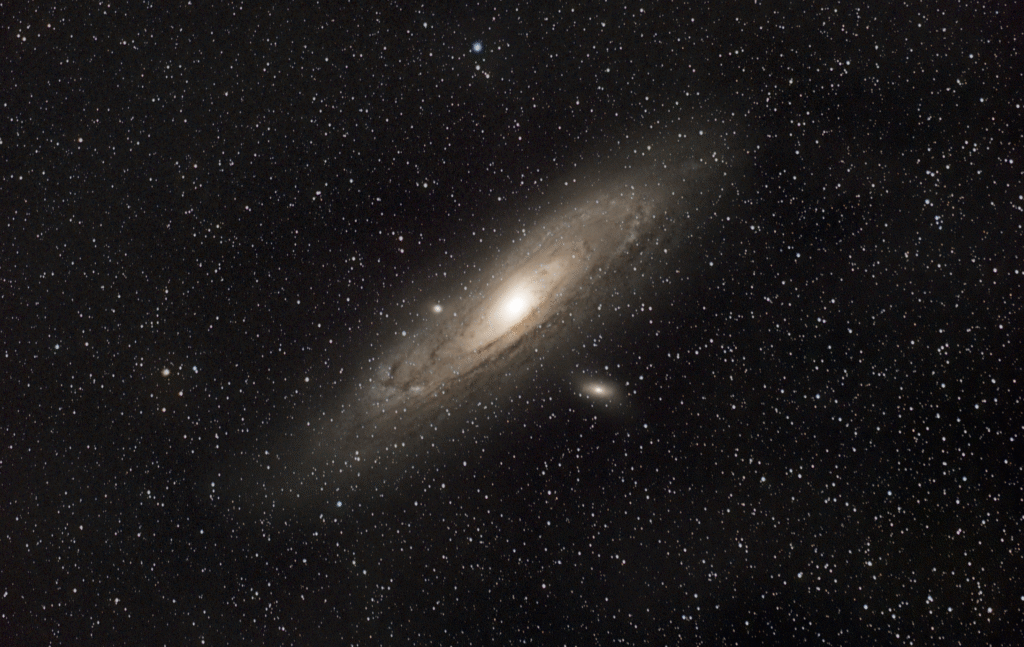 Častý cíl vizuálních pozorovatelů i fotografů. Dost okoukané, ale stále hezké. Naše nejbližší galaxie M31, Galaxie v Andromedě. Na fotce jsou viditelné ještě galaxie M32 a M110.