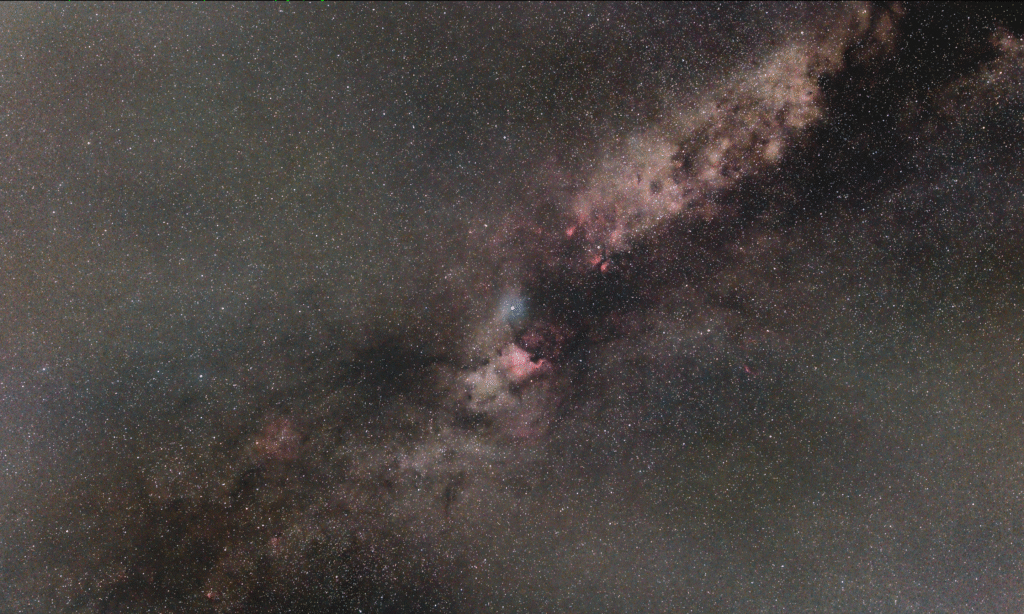 Focení mléčné dráhy, dominantou jsou mlhoviny kolem hvězd Sadr, Deneb, Granátová hvězda.