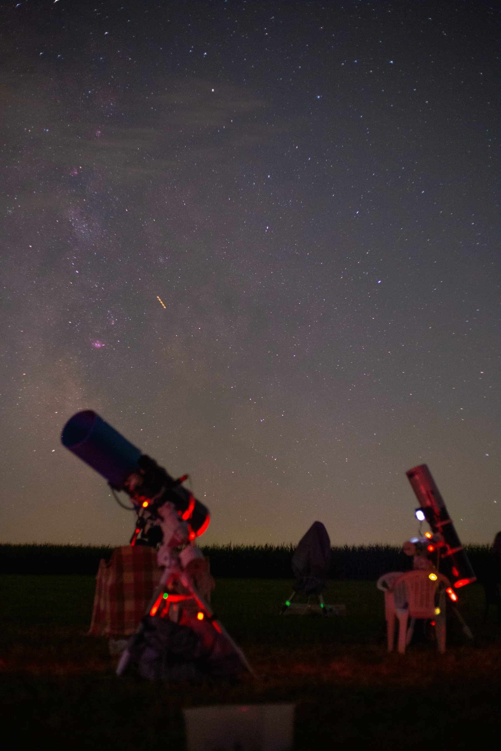 Tento timelapse vzniknul z noci z 30. 7. na 31. 7. 2024. Sestava vlevo je od prof. Civiše, sestava vpravo by měla být MUMO. Foceno na Canon 6D, 50 mm ohnisko, f/2.2, ISO 3200, 6 sekund expozice. Poskládané v programu Adobe Premiere Pro 2024, 45 fps.
