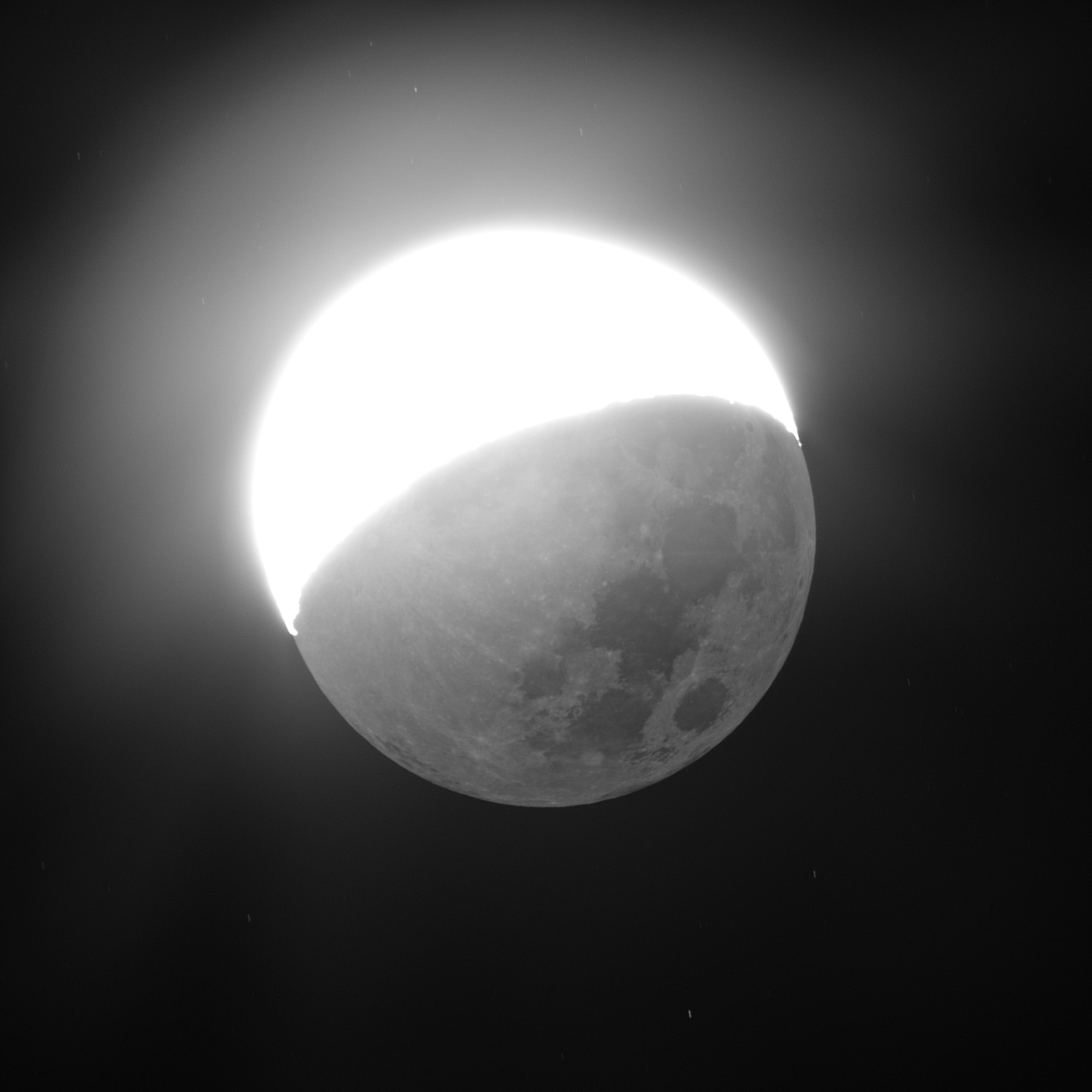 Již první pozorovací noc se nad ránem podařilo dokončit automatizaci sestavy v prostředí softwaru N.I.N.A., který umožňuje plynulý chod sestavy bez dohledu. Ve zbytku noci jsme se rozhodli pořídit pár testovacích fotek objektů dominující ranní oblohu – Měsíc a hvězdokupa Plejády.