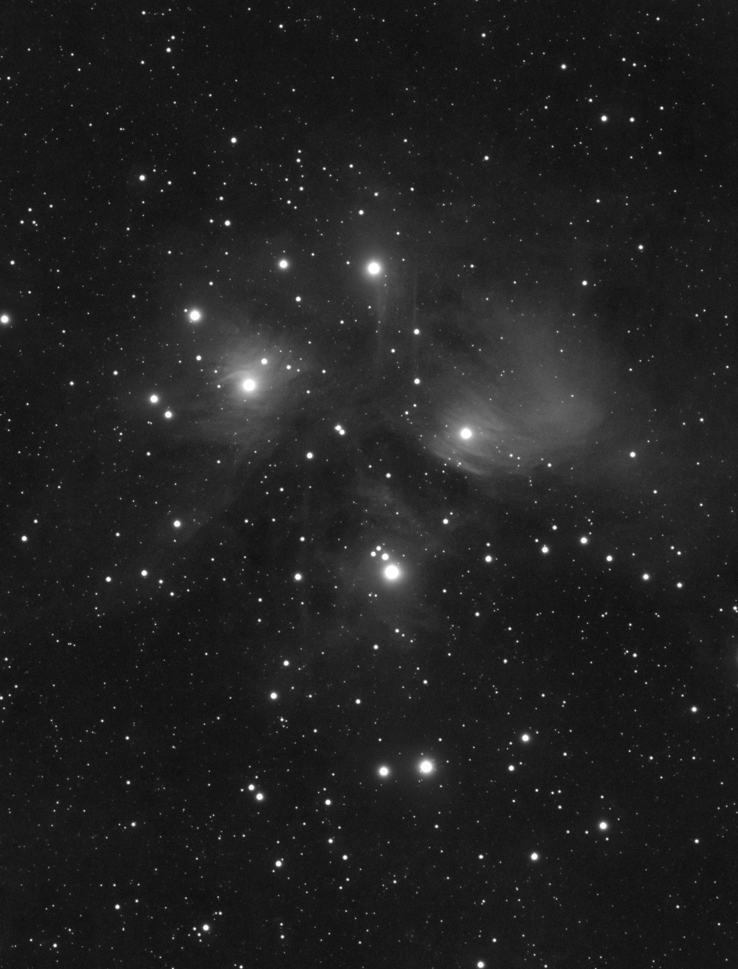 I pouhých 13 minut expozičního času bylo dostatek na vykreslení mlhoviny v okolí hvězdokupy Plejád.