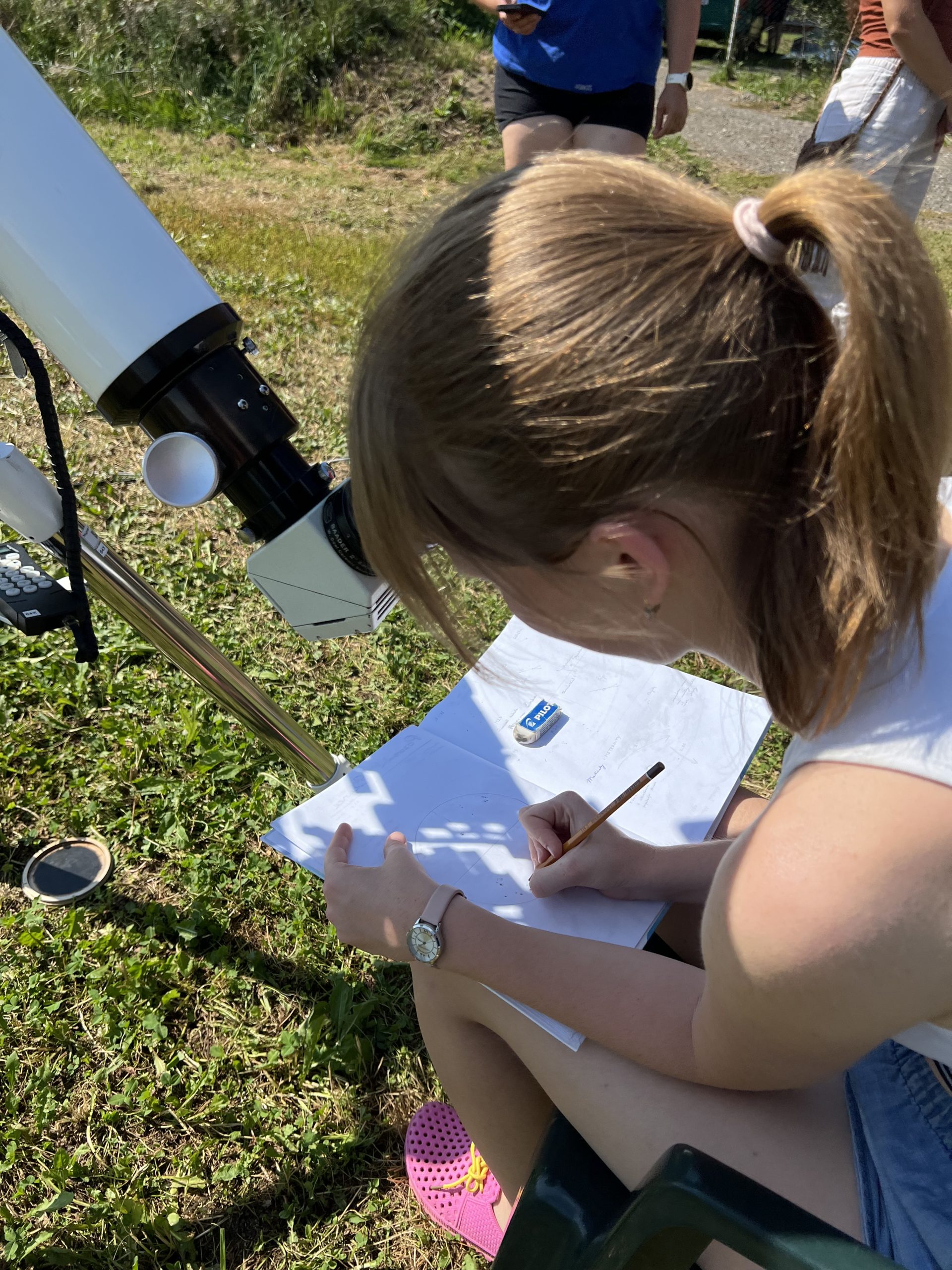 Sluneční skupina si pro expedičníky připravila pozorování Slunce s dalekohledy z Hvězdárny Vyškov a Planetária Ostrava. Do Expedičního projektu zakreslování Slunce se zapojila Karolína Faitová a Klára Semorádová. Na obrázcích můžete vidět zákresy z různých dní.