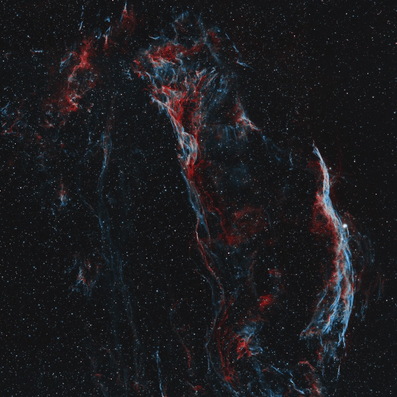 Letošní Expu jsme odstartovali fotkou mlhoviny Řas (C 33 a 34) v HOO barevné paletě. Na té jsou zachyceny jak její východní, tak i západní části, stejně jako např. Pickering’s Triangle. Vybavení: SW EQ6-R, TS 76EDPH, QHY294M, Antlia HO 3,5 h expozice