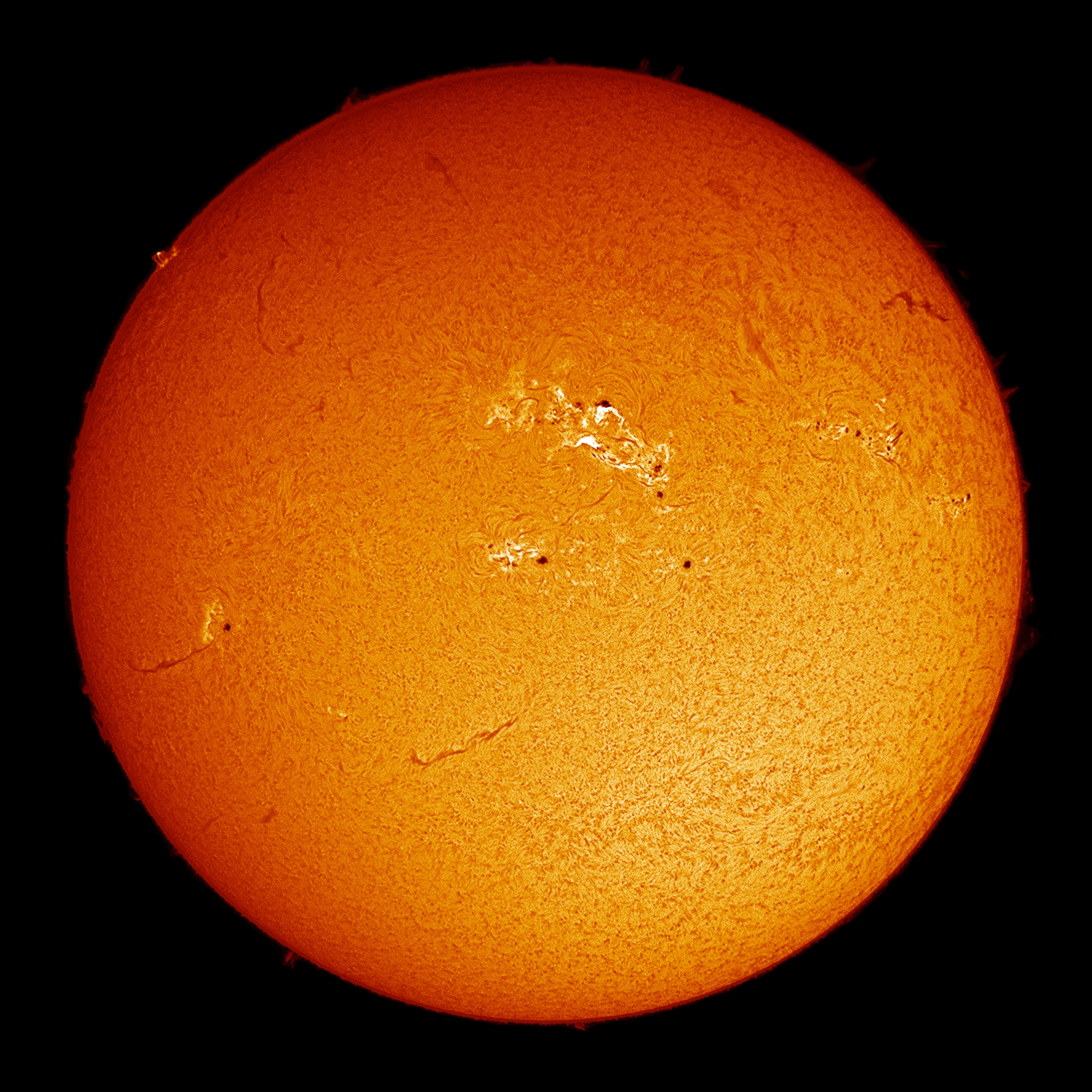Na Slunci se toho poslední dobou děje opravdu hodně! Fakulová pole, protuberance, sluneční skvrny – to vše můžete spatřit, jestliže máte potřebné vybavení. Pro naše pozorování jsme použili ve spolupráci se sluneční skupinou jejich H-alpha dalekohled Lunt LS60T s kamerou ZWO ASI178MC. V monitorování sluneční aktivity budeme pokračovat nadále.