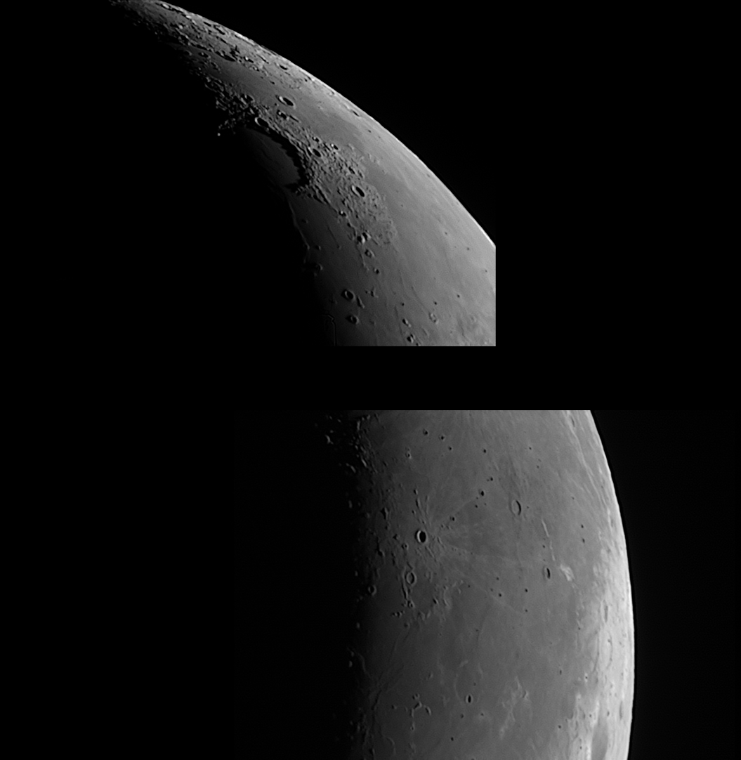 Toho rána byl seeing poněkud neklidný, ale i tak se nám podařilo z našeho pozorování získat úctyhodné detaily. Část Měsíce ale vzala za své. Foto: Martin Tylšar, Zpracování: Tomáš Rektořík
